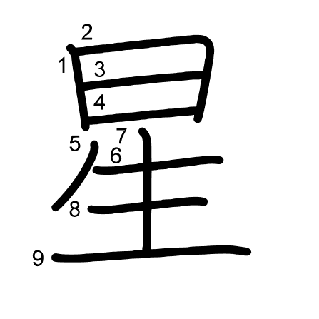 Hlavní radikál: 日 (72) Tahy: 9 obrázek | animace | tabulka