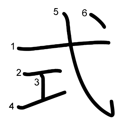 Hlavný radikál: 弋 (56) Ťahy: 6 obrázok (png) | animácie (svg) | tabuľka (svg)