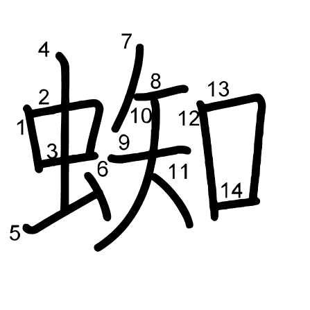 Hlavní radikál: 虫 (142) Tahy: 14 obrázek | animace | tabulka