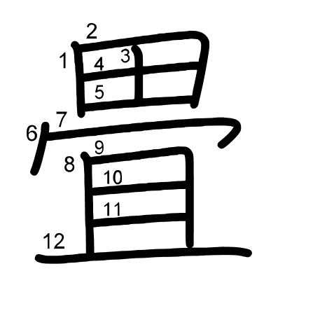 Hlavní radikál: 田 (102) Tahy: 12 obrázek | animace | tabulka