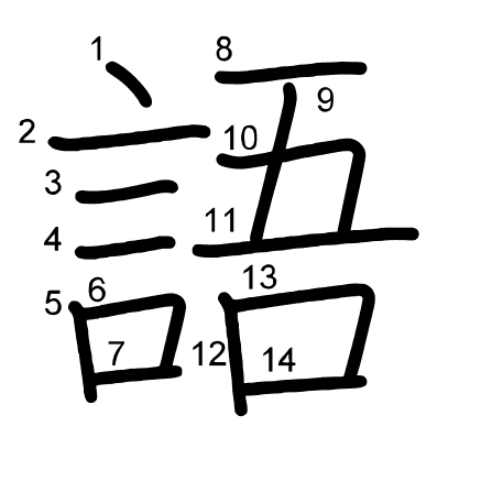 Hlavní radikál: 言 (149) Tahy: 14 obrázek | animace | tabulka