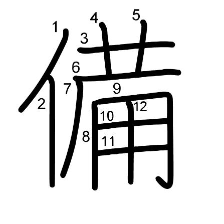 Hlavný radikál: 人 (9) Ťahy: 12 obrázok (png) | animácie (svg) | tabuľka (svg)