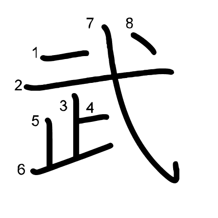 Hlavní radikál: 止 (77) Tahy: 8 obrázek | animace | tabulka