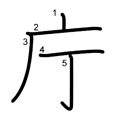 Hlavní radikál: 广 (53) Tahy: 5 obrázek | animace | tabulka