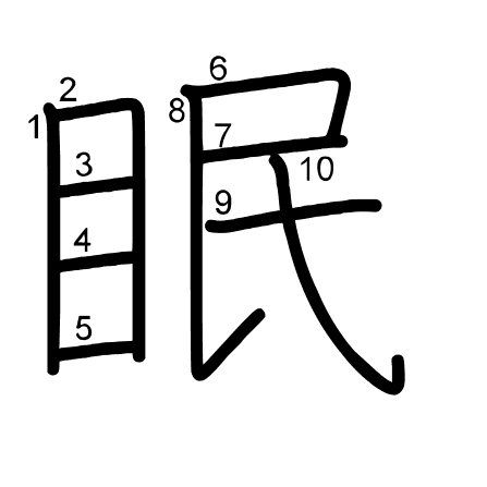 Čtení: ミン, ねむ.る, ねむ.い, ね