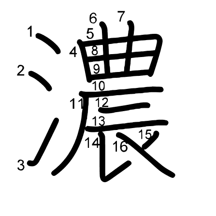 Main radical: 水 (85) Strokes: 16 picture (png) | animation (svg) | table (svg)