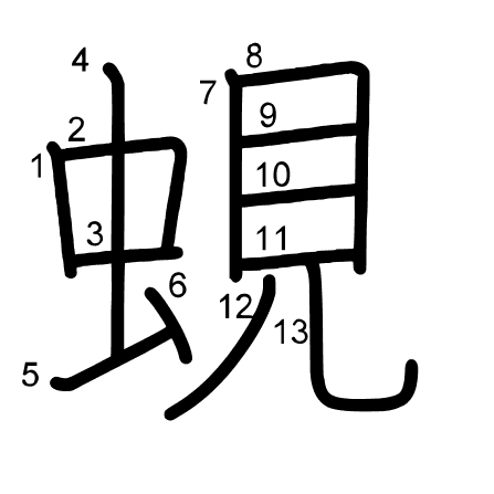 Hlavní radikál: 虫 (142) Tahy: 13 obrázek | animace | tabulka