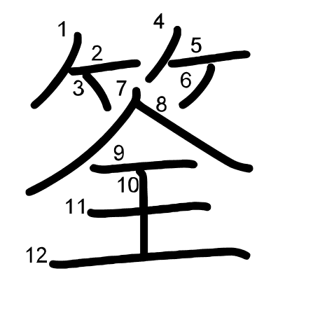 Hlavný radikál: 竹 (118) Ťahy: 12 obrázok (png) | animácie (svg) | tabuľka (svg)