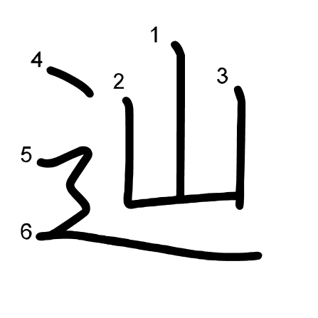 Hlavní radikál: 辵 (162) Tahy: 6 obrázek | animace | tabulka