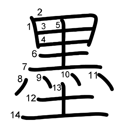 Hlavní radikál: 土 (32) Tahy: 14 obrázek | animace | tabulka