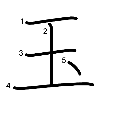 Hlavní radikál: 玉 (96) Tahy: 5 obrázek | animace | tabulka