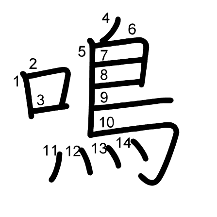 Hlavný radikál: 口 (30) Ťahy: 14 obrázok (png) | animácie (svg) | tabuľka (svg)