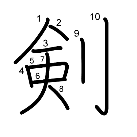 Hlavný radikál: 刀 (18) Ťahy: 10 obrázok (png) | animácie (svg) | tabuľka (svg)