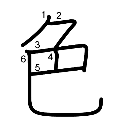Hlavní radikál: 色 (139) Tahy: 6 obrázek | animace | tabulka