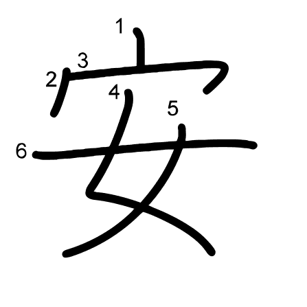 Hlavní radikál: 宀 (40) Tahy: 6 obrázek | animace | tabulka
