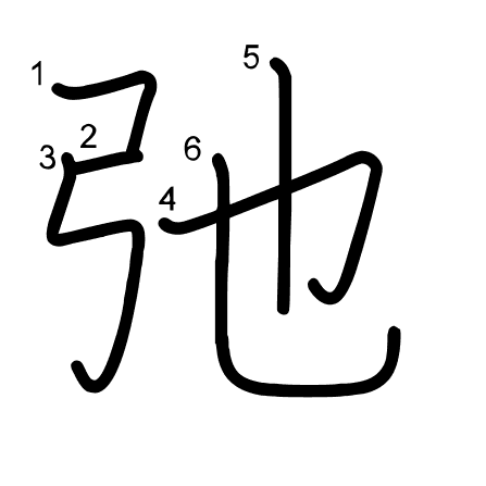 Hlavný radikál: 弓 (57) Ťahy: 6 obrázok (png) | animácie (svg) | tabuľka (svg)