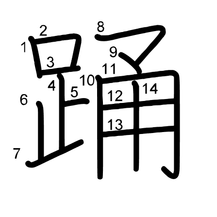 Main radical: 足 (157) Strokes: 14 picture (png) | animation (svg) | table (svg)