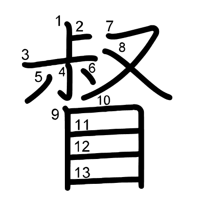 Hlavní radikál: 目 (109) Tahy: 13 obrázek | animace | tabulka