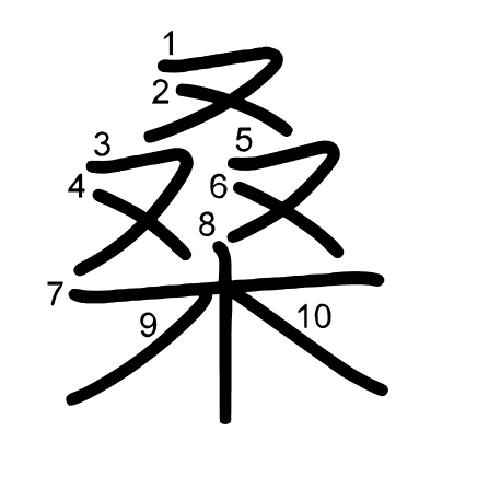 Hlavní radikál: 木 (75) Tahy: 10 obrázek | animace | tabulka