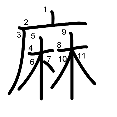 Hlavní radikál: 广 (53) Tahy: 11 obrázek | animace | tabulka
