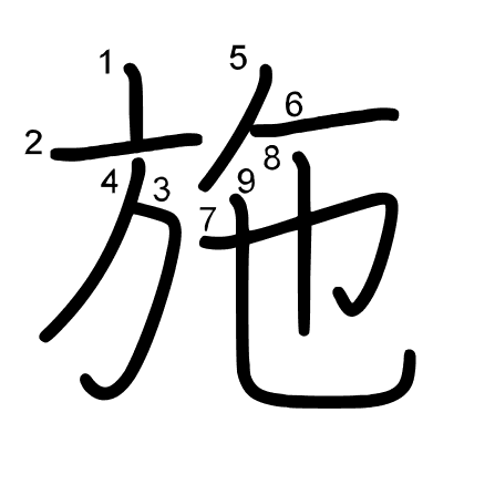 Hlavní radikál: 方 (70) Tahy: 9 obrázek | animace | tabulka