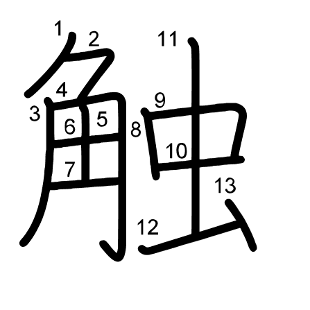 Hlavný radikál: 角 (148) Ťahy: 13 obrázok (png) | animácie (svg) | tabuľka (svg)