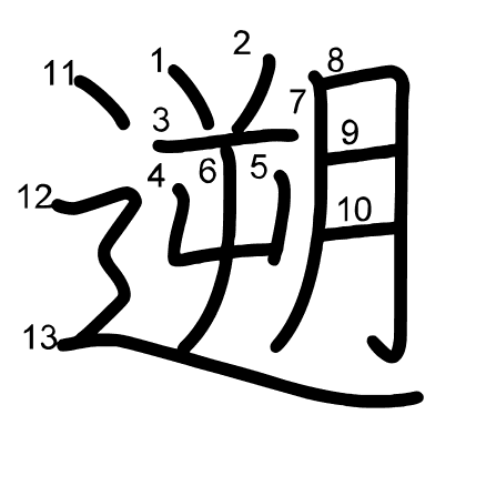 Hlavní radikál: 辵 (162) Tahy: 13 obrázek | animace | tabulka