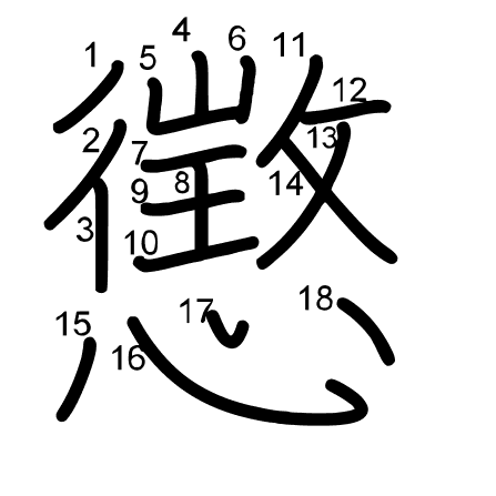 Hlavní radikál: 心 (61) Tahy: 18 obrázek | animace | tabulka