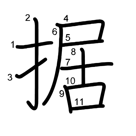 Hlavní radikál: 手 (64) Tahy: 11 obrázek | animace | tabulka