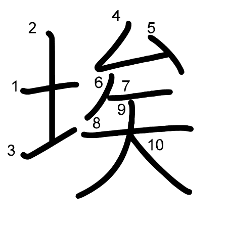 Hlavní radikál: 土 (32) Tahy: 10 obrázek | animace | tabulka