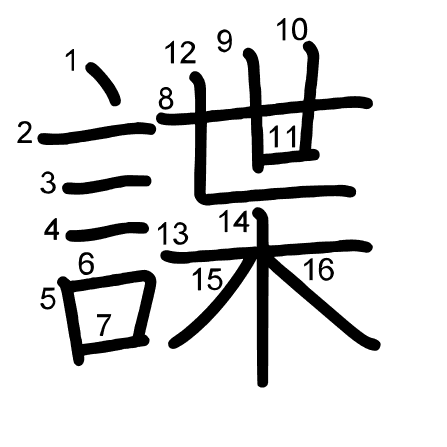 Main radical: 言 (149) Strokes: 16 picture (png) | animation (svg) | table (svg)