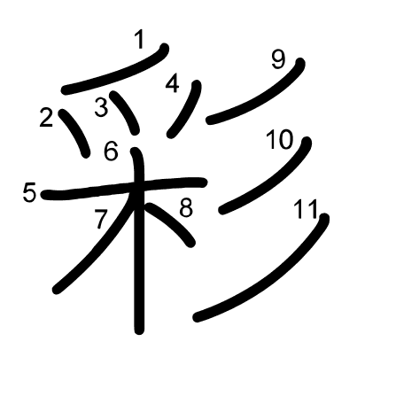 Hlavní radikál: 彡 (59) Tahy: 11 obrázek | animace | tabulka