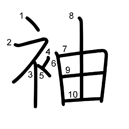 Hlavní radikál: 衣 (145) Tahy: 10 obrázek | animace | tabulka