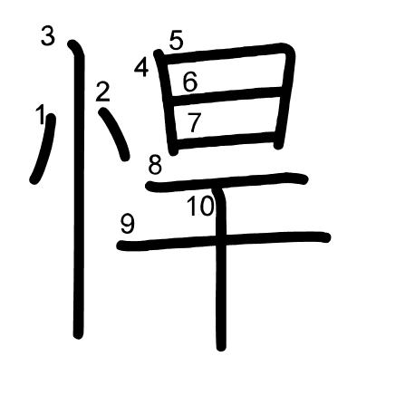 Main radical: 心 (61) Strokes: 10 picture (png) | animation (svg) | table (svg)