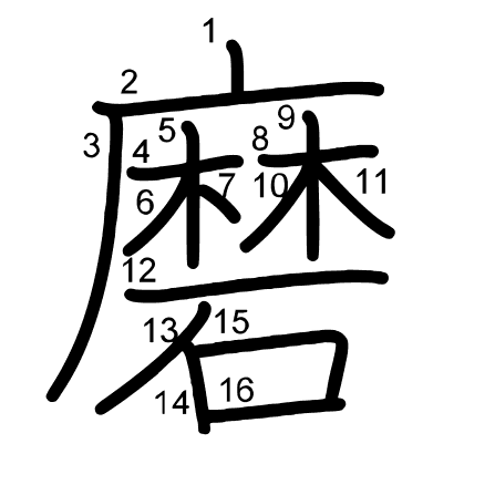 Hlavní radikál: 石 (112) Tahy: 16 obrázek | animace | tabulka