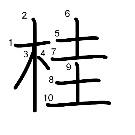 Hlavný radikál: 木 (75) Ťahy: 10 obrázok (png) | animácie (svg) | tabuľka (svg)