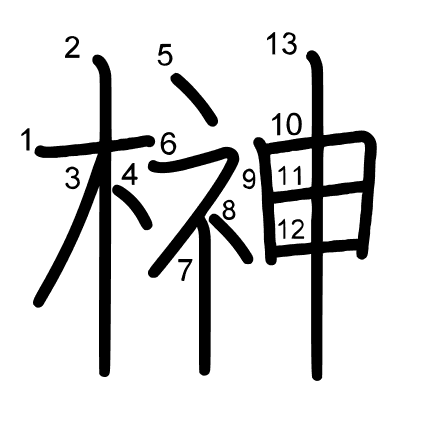 Hlavní radikál: 木 (75) Tahy: 13 obrázek | animace | tabulka