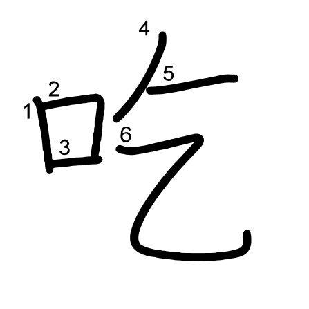 Hlavný radikál: 口 (30) Ťahy: 6 obrázok (png) | animácie (svg) | tabuľka (svg)