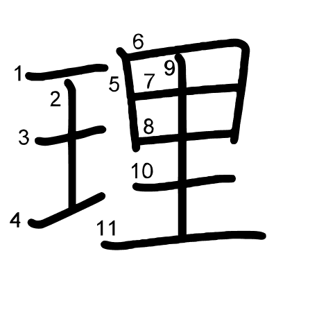 Readings: リ, ことわり, あや, おさむ, さと, さとる, た...