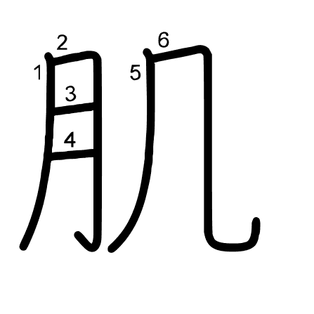 Main radical: 肉 (130) Strokes: 6 picture (png) | animation (svg) | table (svg)