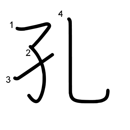 Hlavný radikál: 子 (39) Ťahy: 4 obrázok (png) | animácie (svg) | tabuľka (svg)