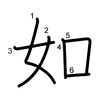 Hlavní radikál: 女 (38) Tahy: 6 obrázek | animace | tabulka
