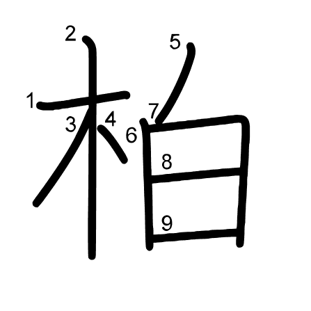 Čtení: ハク, ヒャク, ビャク, かしわ, かい, かし
