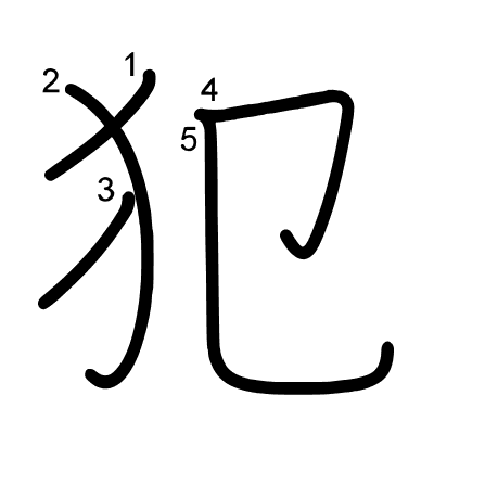 Hlavný radikál: 犬 (94) Ťahy: 5 obrázok (png) | animácie (svg) | tabuľka (svg)