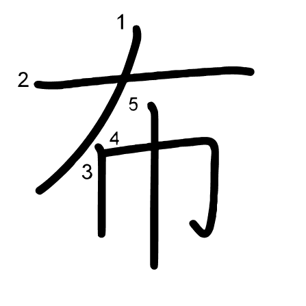 Main radical: 巾 (50) Strokes: 5 picture (png) | animation (svg) | table (svg)