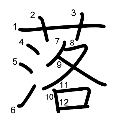 Readings: raku, o.čiru, o.či, o.tosu, ...