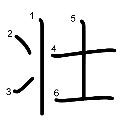 Hlavní radikál: 爿 (90) Tahy: 6 obrázek | animace | tabulka