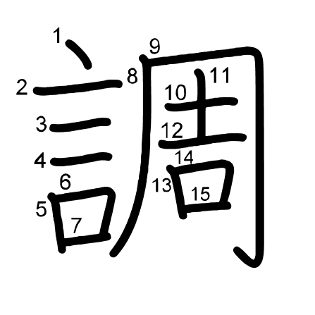 Hlavný radikál: 言 (149) Ťahy: 15 obrázok (png) | animácie (svg) | tabuľka (svg)