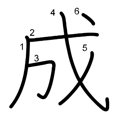 Hlavný radikál: 戈 (62) Ťahy: 6 obrázok (png) | animácie (svg) | tabuľka (svg)