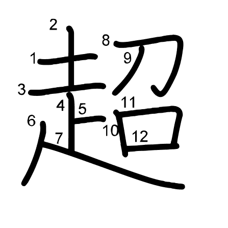 Čtení: チョウ, こ.える, こ.す, まさる, わたる